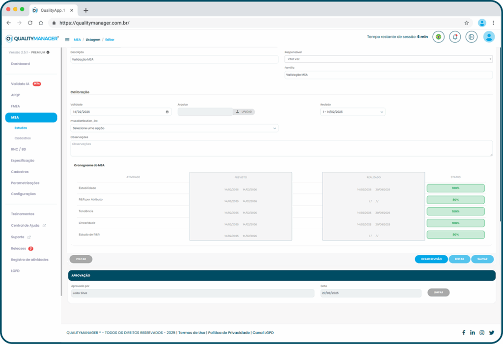 O módulo MSA do QualityManager garante confiabilidade nos seus instrumentos com estudos estatísticos automatizados, relatórios auditáveis e integração com o APQP e demais ferramentas da qualidade.