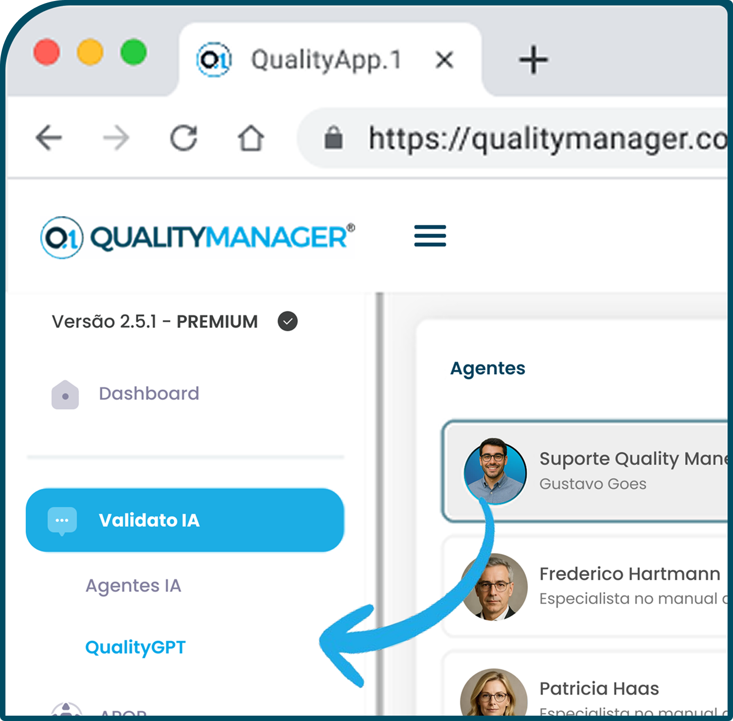 Inicie o time com mais autonomia: o QualityGPT guia cada etapa e responde perguntas frequentes sobre os processos da empresa.